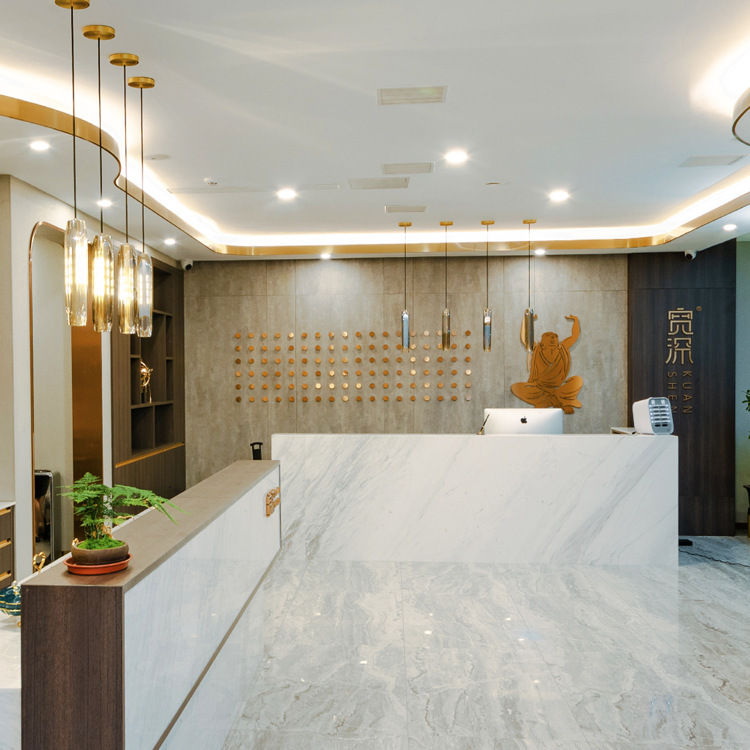 宽深指道经络的品牌基因里有着深厚的传统文化底蕴,独家开创的深感经络指道技法,深入人体筋膜层调理十四经脉。我们为宽深品牌的设计主张“以心为宽、以道为深”的品牌内核。呈现出深度释放的品牌感官体验和融合了古朴与现代的新中式风格。