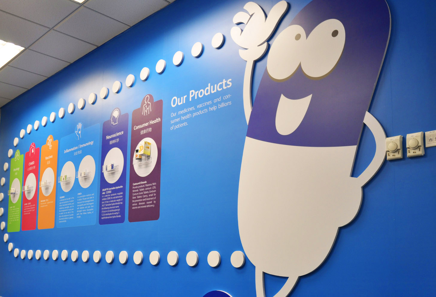 辉瑞(Pfizer Inc)创建于1849年,已有170余年的历史,总部位于美国纽约是一家以科学为基础的、创新的、以患者为先的生物制药公司。辉瑞公司是一个充满活力、开放、共享的国际化团队,我们应邀为其办公空间的环境视觉化和企业年会等提供创意设计。多元文化的视觉表达融入细腻的手绘设计中,为空间中注入了令人愉悦的气息。