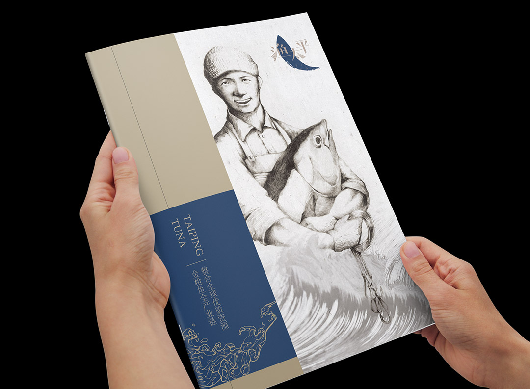 渔太平依托集团雄厚的渔业资源,从捕捞端整合原料,将金枪鱼进行精深加工.产品包括:金枪鱼罐头、金枪鱼香肠、金枪鱼礼品等。朗润的设计团队采用手绘的形式为渔太平品牌创作了自然、有亲和力的品牌形象。涵盖:标志设计、产品包装设计、画册设计… …